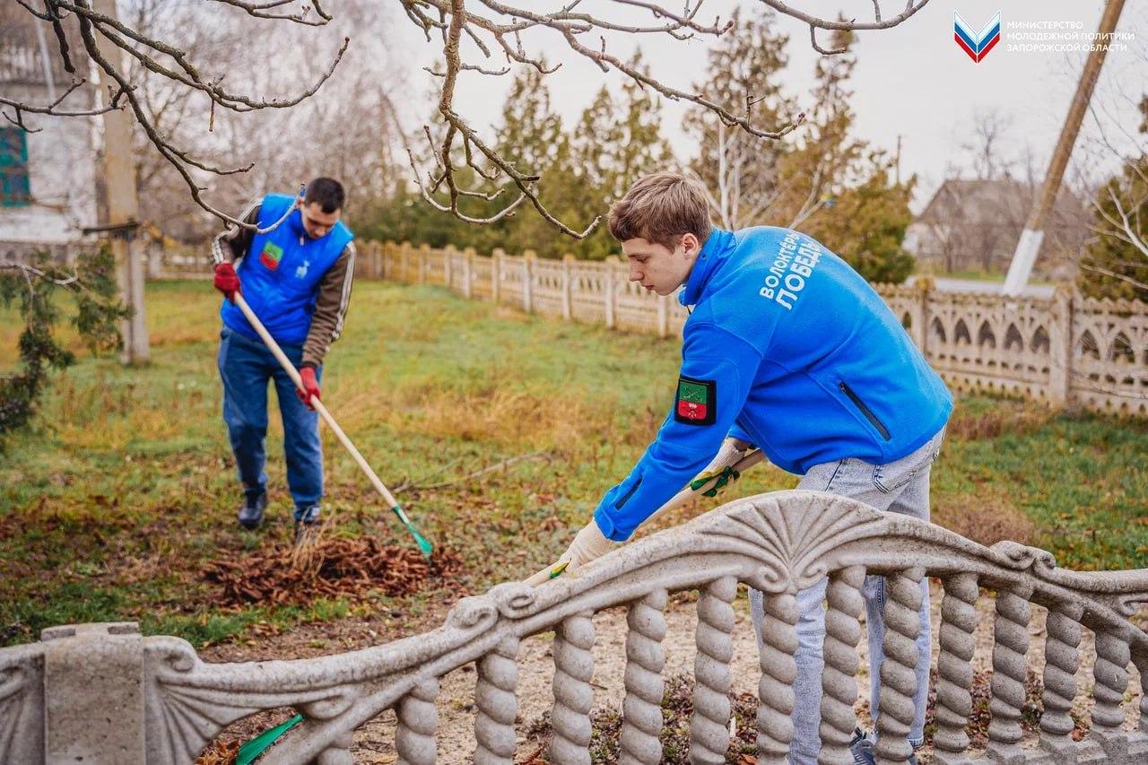 Добровольцы регионального отделения «Волонтеры Победы» провели субботник на мемориале на Братской могиле советских солдат в селе Тихоновка.