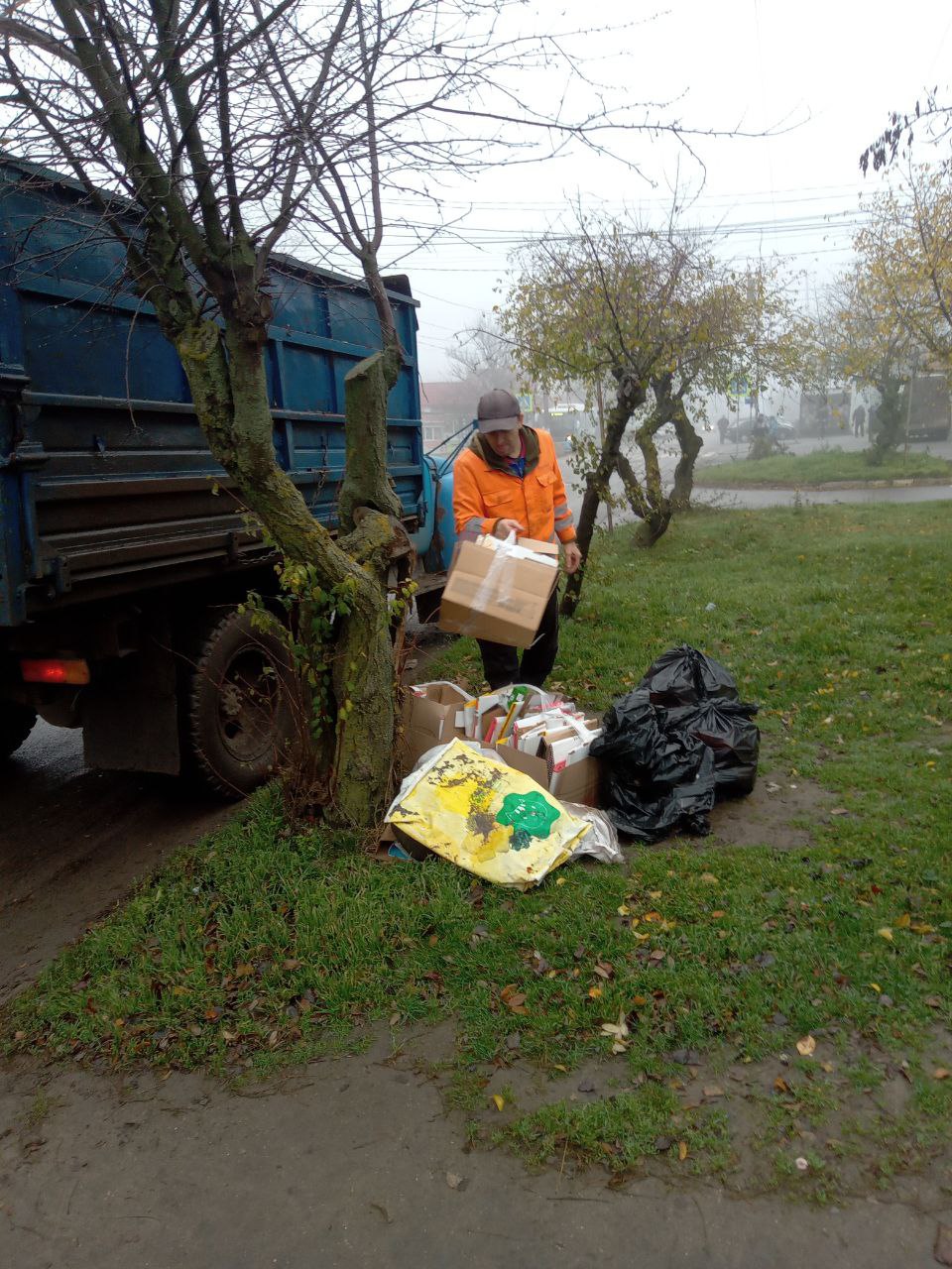 Сотрудники предприятия «Благоустройство. Бердянск» очисткой территории от накопившегося мусора, собрали листья и ветки.