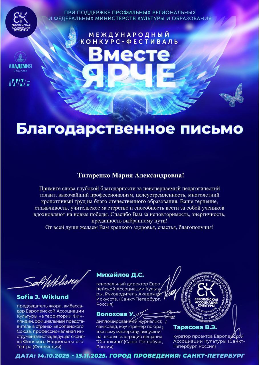 Поздравляем весь коллектив и его руководителя, Титаренко М.А., с этим замечательным достижением!