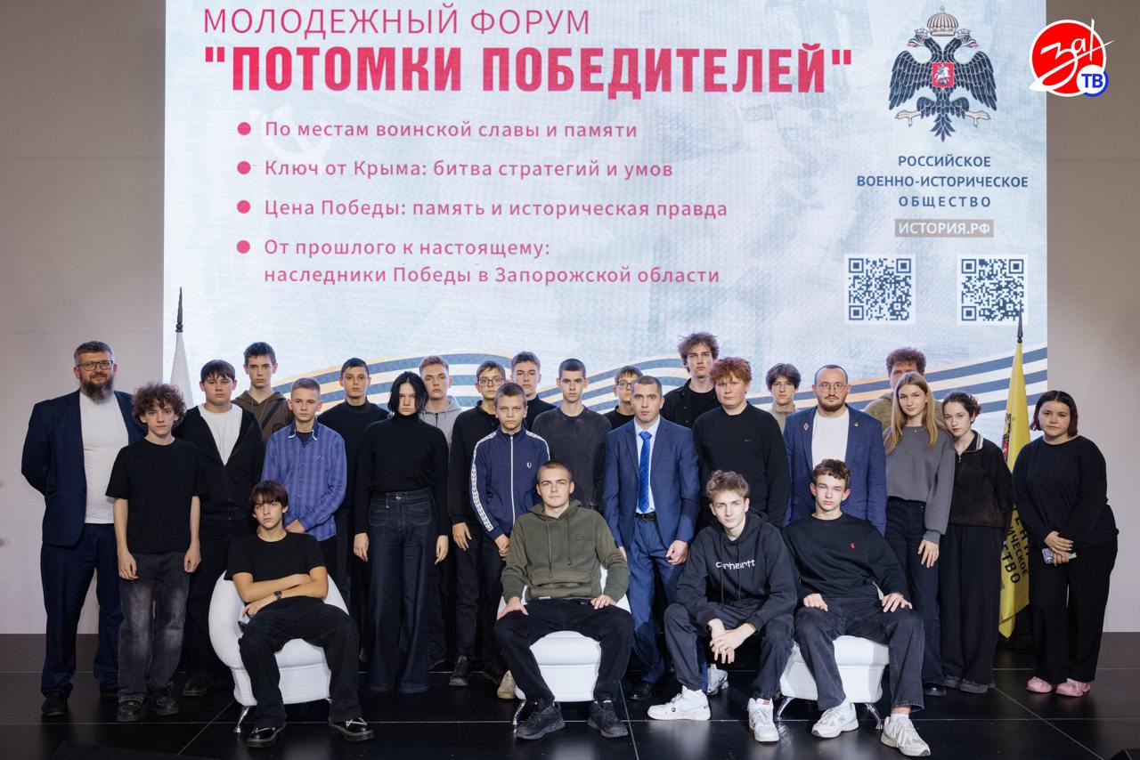 Студенты и школьники Запорожской области собрались на молодежном форуме в мультимедийном парке «Россия — моя история». Мероприятие под названием «Потомки победителей» организовали представители регионального отделения Российского военно-исторического общества.