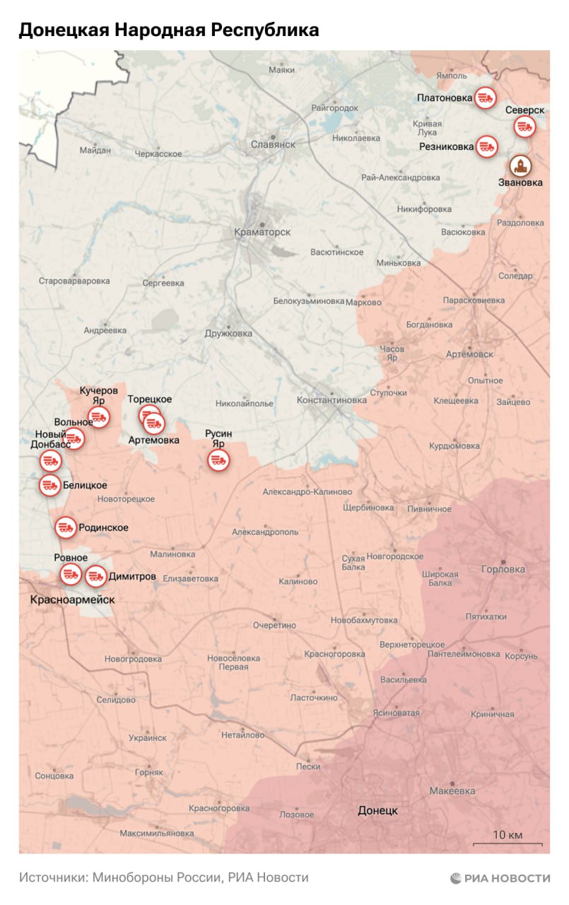 Ситуация в Красноармейске, свыше 75% которого находится под контролем ВС России, планомерно ухудшается для противника, заявил РИА Новости глава ДНР Пушилин.