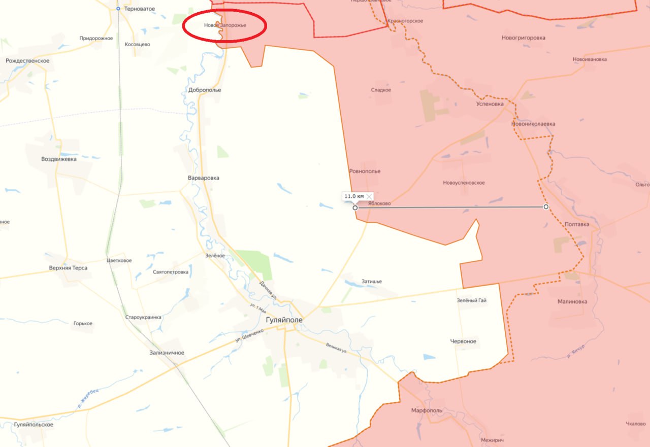 Группировка "Юг", после освобождения н.п. Новое Запорожье, будет блокировать укрепрайон ВСУ Гуляйполе, двигаясь через населённые пункты Доброполье и Варваровка.