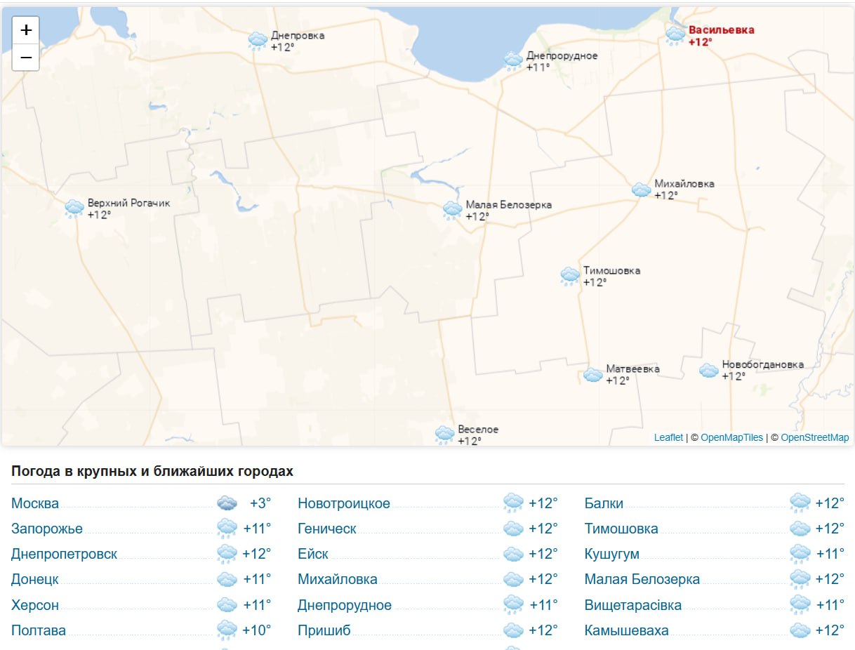 Погода 24 ноября 2025 года в крупных и ближайших к Васильевке городах и населённых пунктах
