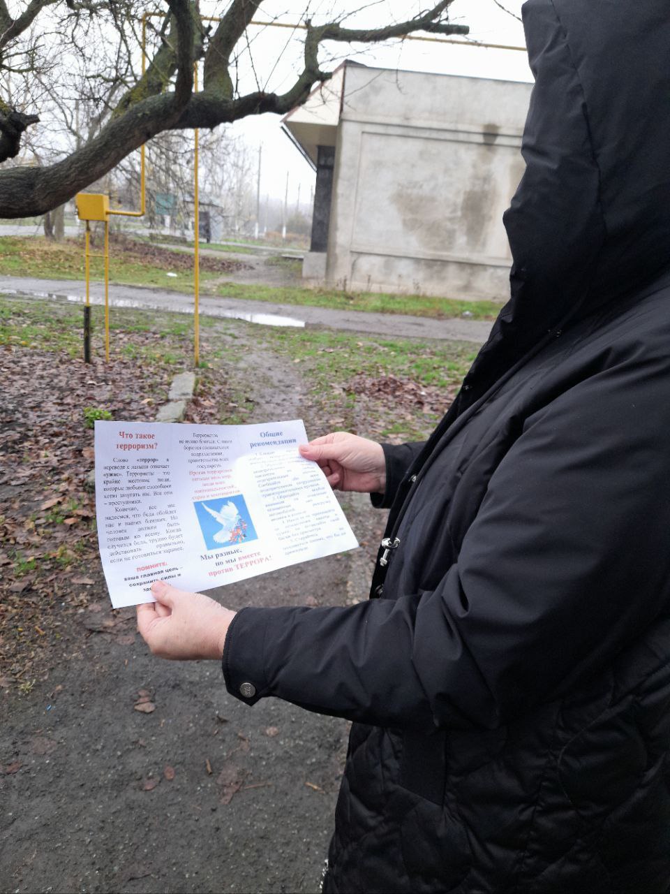 В Клубе досуга с. Возрождение прошла акция по распространению листовок «Объединимся против терроризма». Мероприятие было направлено на профилактику терроризма среди населения и формирование толерантного отношения друг к другу.