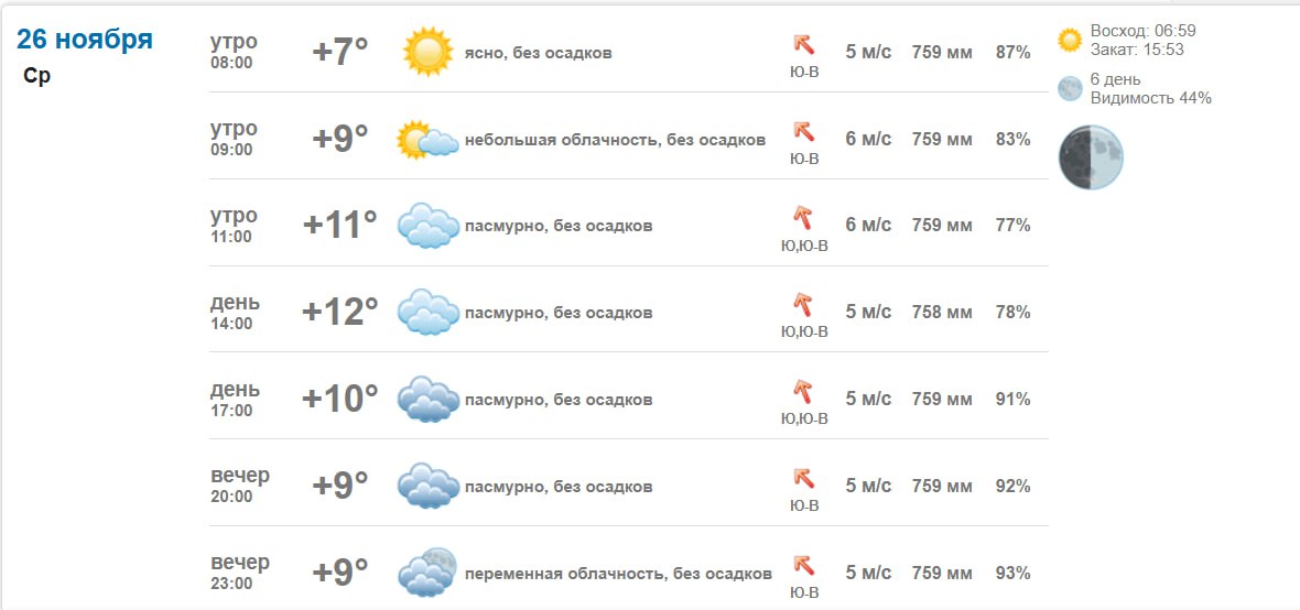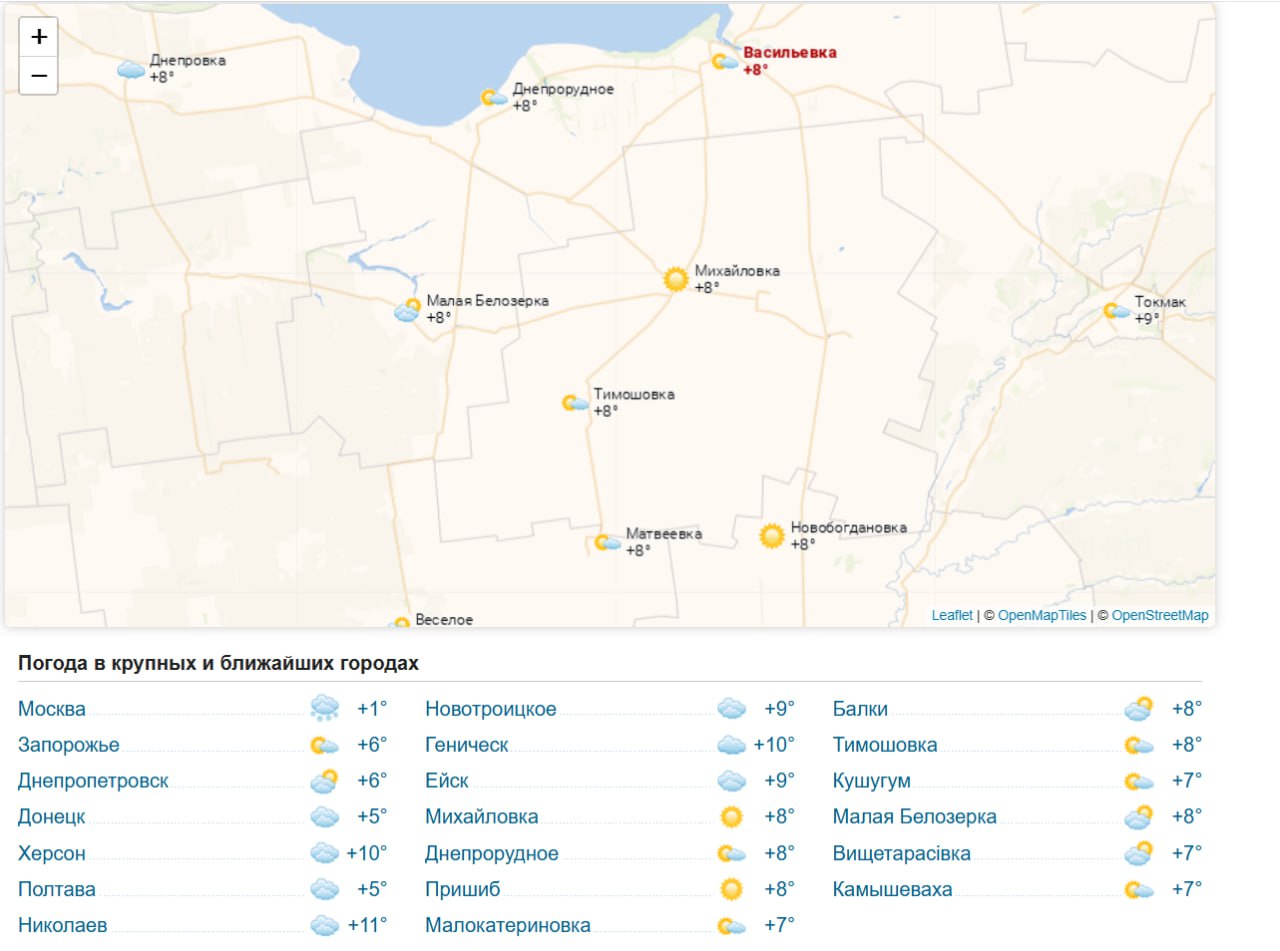 Погода 26 ноября 2025 года в крупных и ближайших к Васильевке городах и населённых пунктах