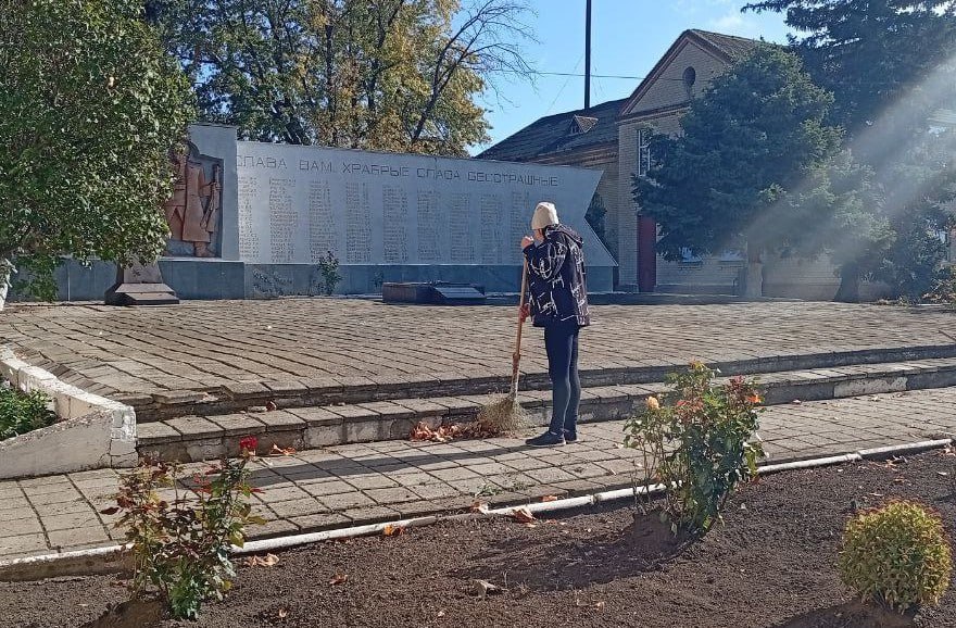Сотрудники и неравнодушные жители территориального отдела Жовтневой группы сёл навели порядок на территории мемориала Славы, что в центре села Октябрьское.