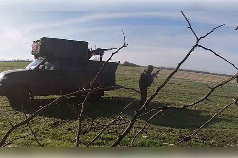 Работают по дронам крупнокалиберным 12,7-мм пулеметом ДШК, установленным в кузове «УАЗ Патриот». Напомним. что в регионе поддерживают подобные мобильные группы в том числе волонтерской помощью. В частности, иногда зенитчикам нужно обшить свои машины противодронными экранами, и местные жители покупают им сетку-рабицу.
