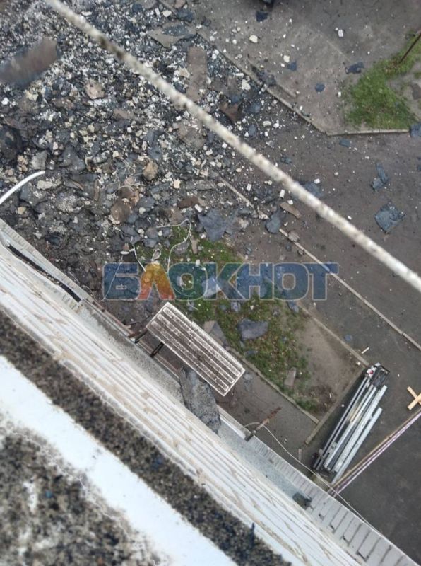 Возле подъезда лежит огромная гора строительного мусора с метр величиной. Днепроруденцам удалось даже записать на видео, как рабочие кидают кровлю прямо с девятого этажа. Судя по всему, даже пристальное внимание СМИ не повлияло на подрядчика.