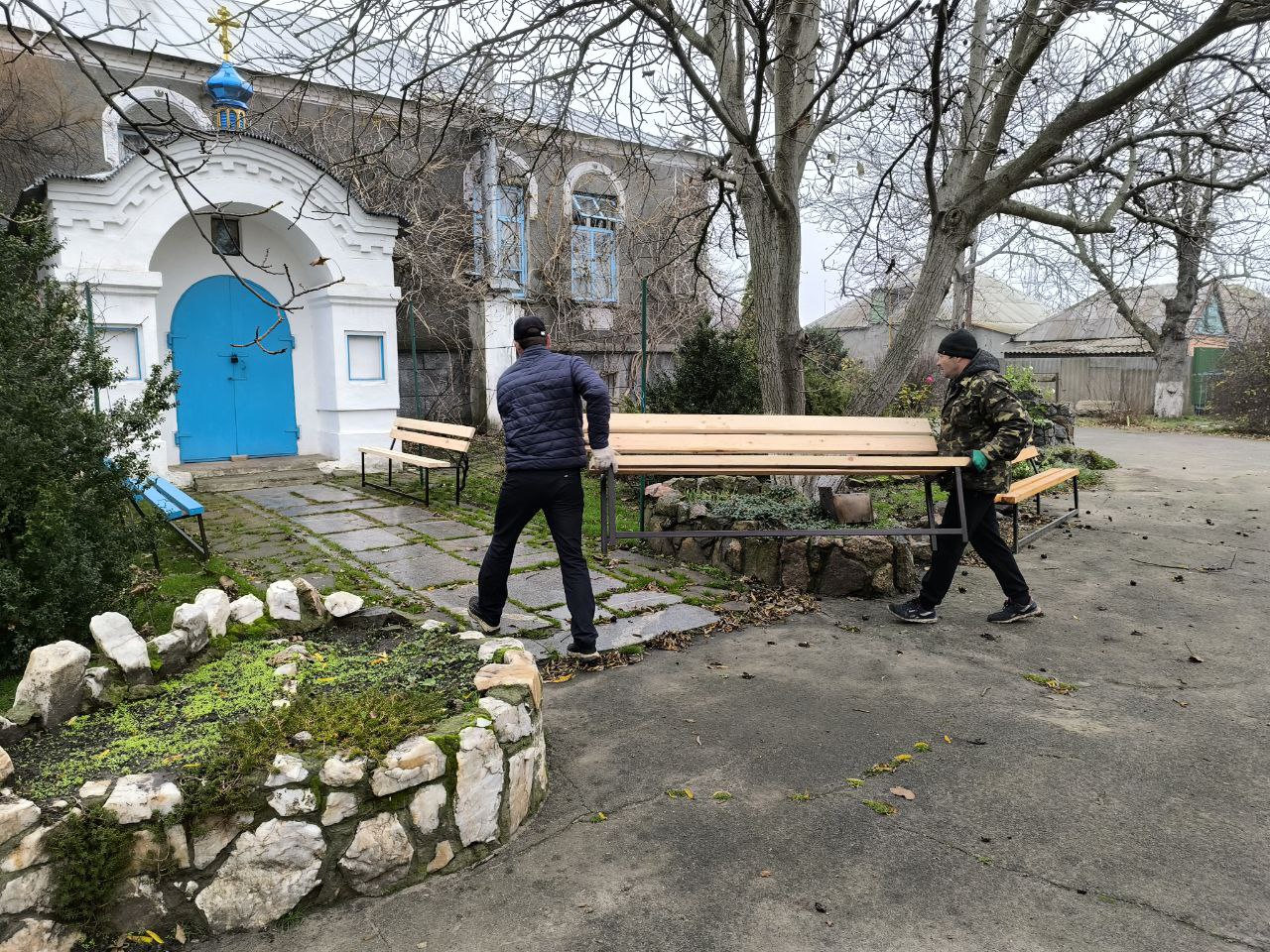 Сотрудники МУП УК «Контакт» изготовили лавочки и установили их в общественных местах и в Храме во имя Первоверховных Апостолов Петра и Павла г. Молочанск