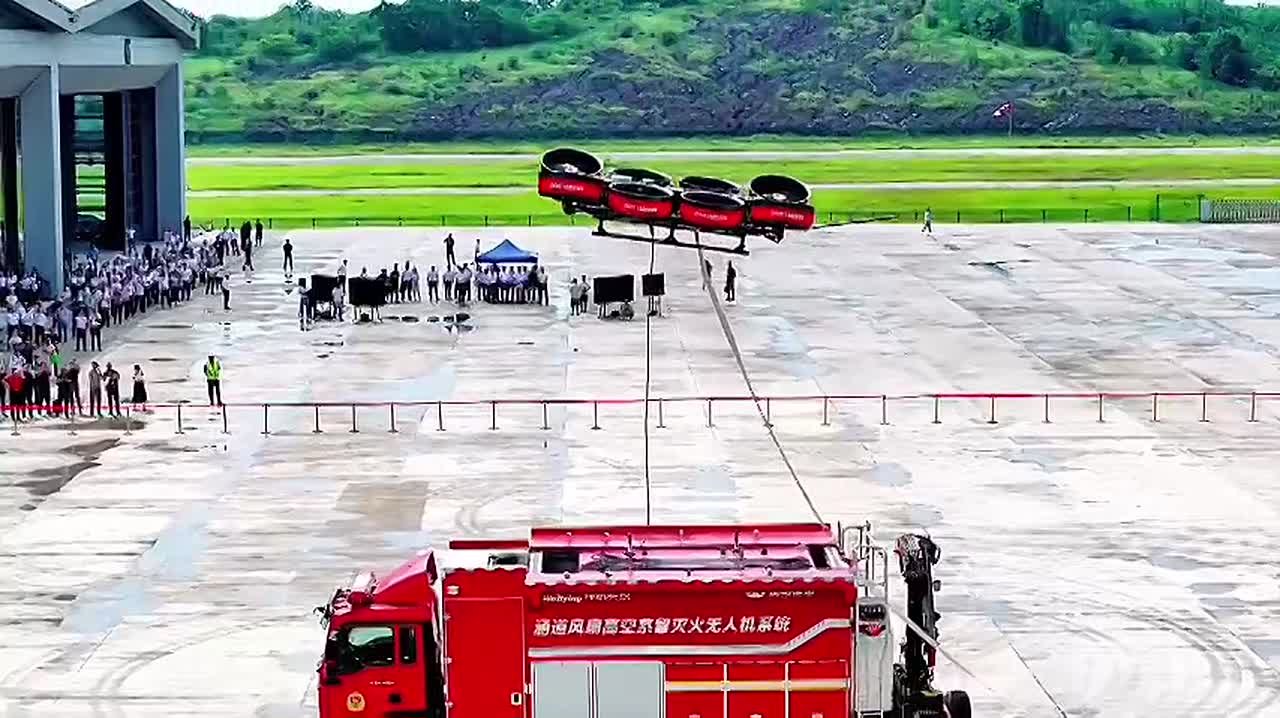 Китайские специалисты создали пожарный дрон, который работает в паре с пожарной машиной. Большой коптер поднимается на высоту до 200 м.