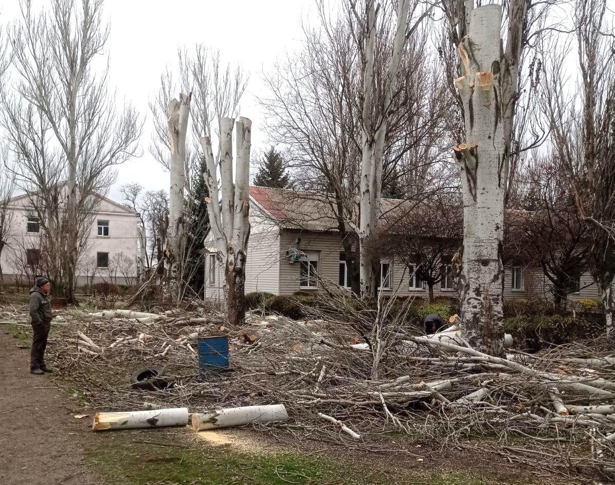 В рамках работ по благоустройству г. Молочанска аварийно-восстановительная бригада из Ингушетии провела санитарную опиловку деревьев на территории психиатрической больницы