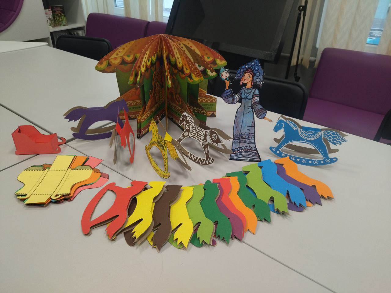 Присутствующие узнали о традициях народного праздника Екатерины - санницы, который отмечали на Руси, и изготавливали сани и лошадок, как символ этого дня.