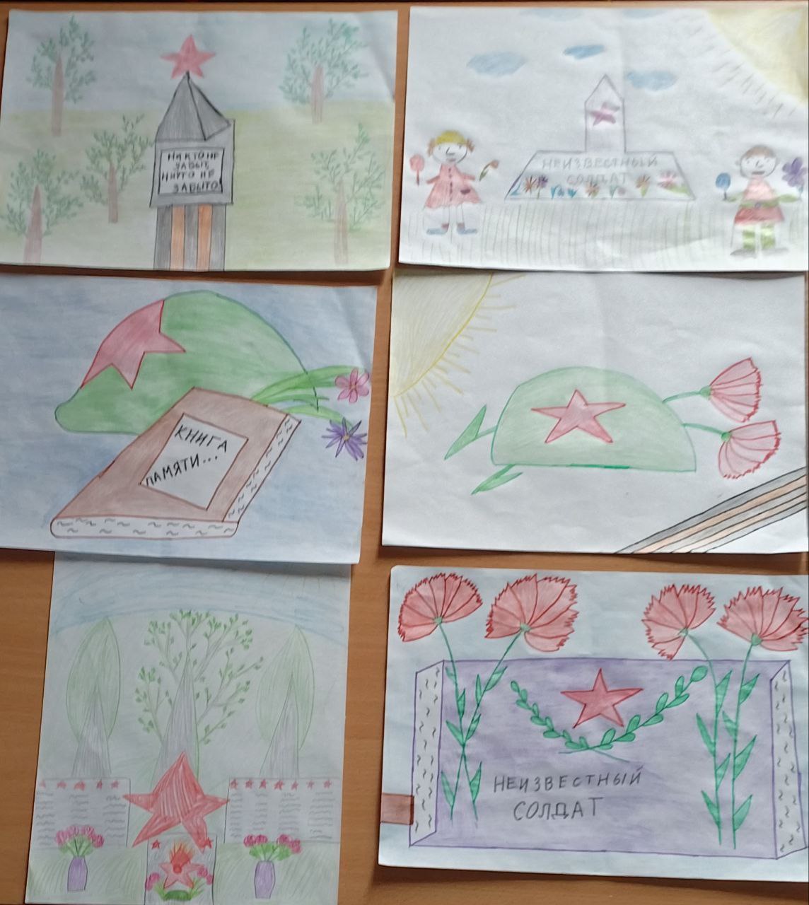 На выставке приуроченной ко дню Неизвестного Солдата можно увидеть рисунки детей, которые отражают их восприятие героических событий и исторических личностей. Маленькие художники изобразили сцены боевых действий, памятники героям, а также символику праздника.