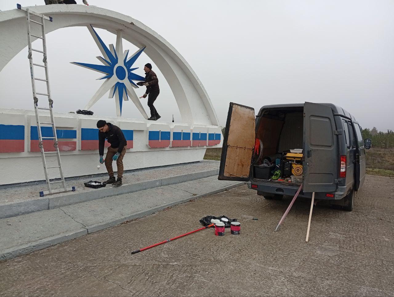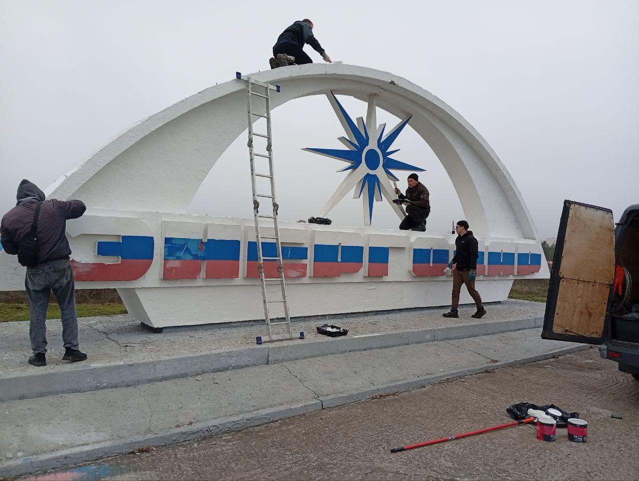 Аварийная бригада Новгородской области провела работы по косметическому ремонту въездной стелы города Энергодар.