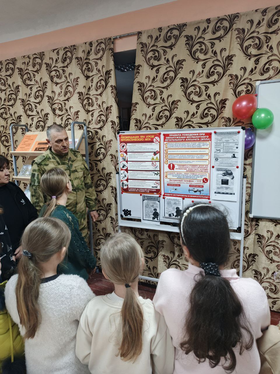 В Центральной библиотеке села Дмитровка состоялась профилактическая беседа «Мы за мир — мы против террора» с участниками вокального кружка «Мелодия». Мероприятие провёл военнослужащий Росгвардии, который в доступной форме разъяснил ребятам ключевые правила поведения в чрезвычайных ситуациях: как действовать при обстрелах и что делать при обнаружении взрывоопасных предметов.