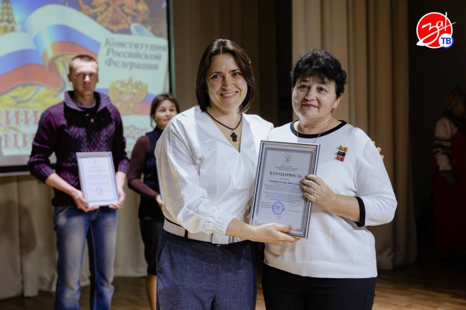Перед началом праздничного концерта в Доме культуры состоялось открытие двух выставок. На одной из них представлены работы, присланные на конкурс, приуроченный ко Дню Конституции. Он организован при поддержке прокуратуры муниципального округа.