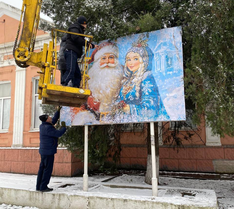 А уже сегодня на площади они заменили новогодний баннер, который любезно предоставил предприниматель Николай Титов.