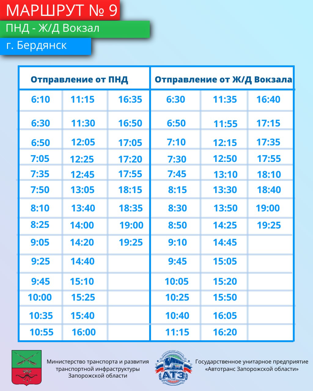 Расскажем о маршруте №9 в г. Бердянске: «ПНД — Ж/Д Вокзал»
