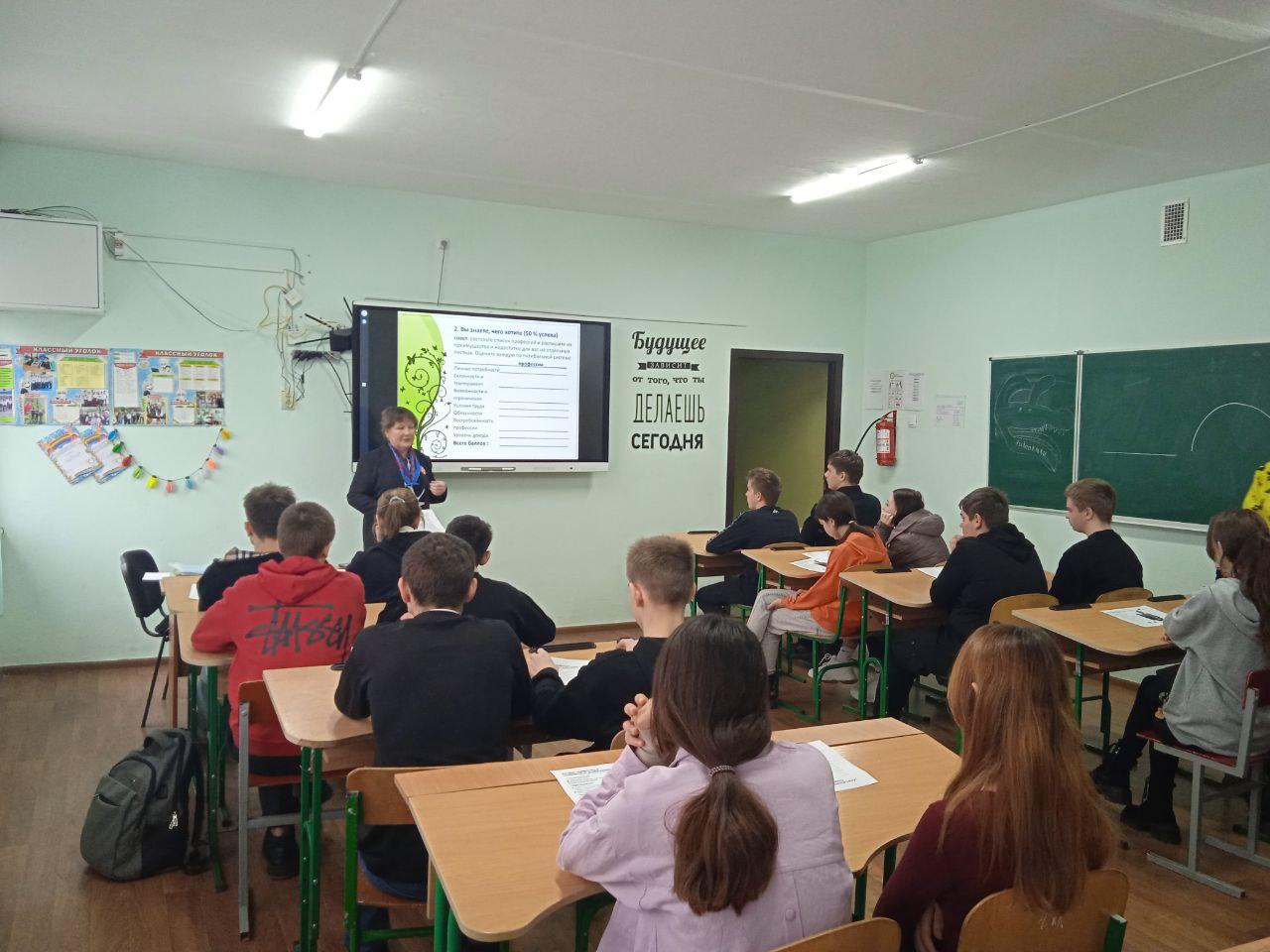 Специалистами кадрового центра в городе Васильевка проведено профориентационное мероприятие для учеников 9–11 классов Тополинской средней школы «Осознанный выбор будущей профессии».