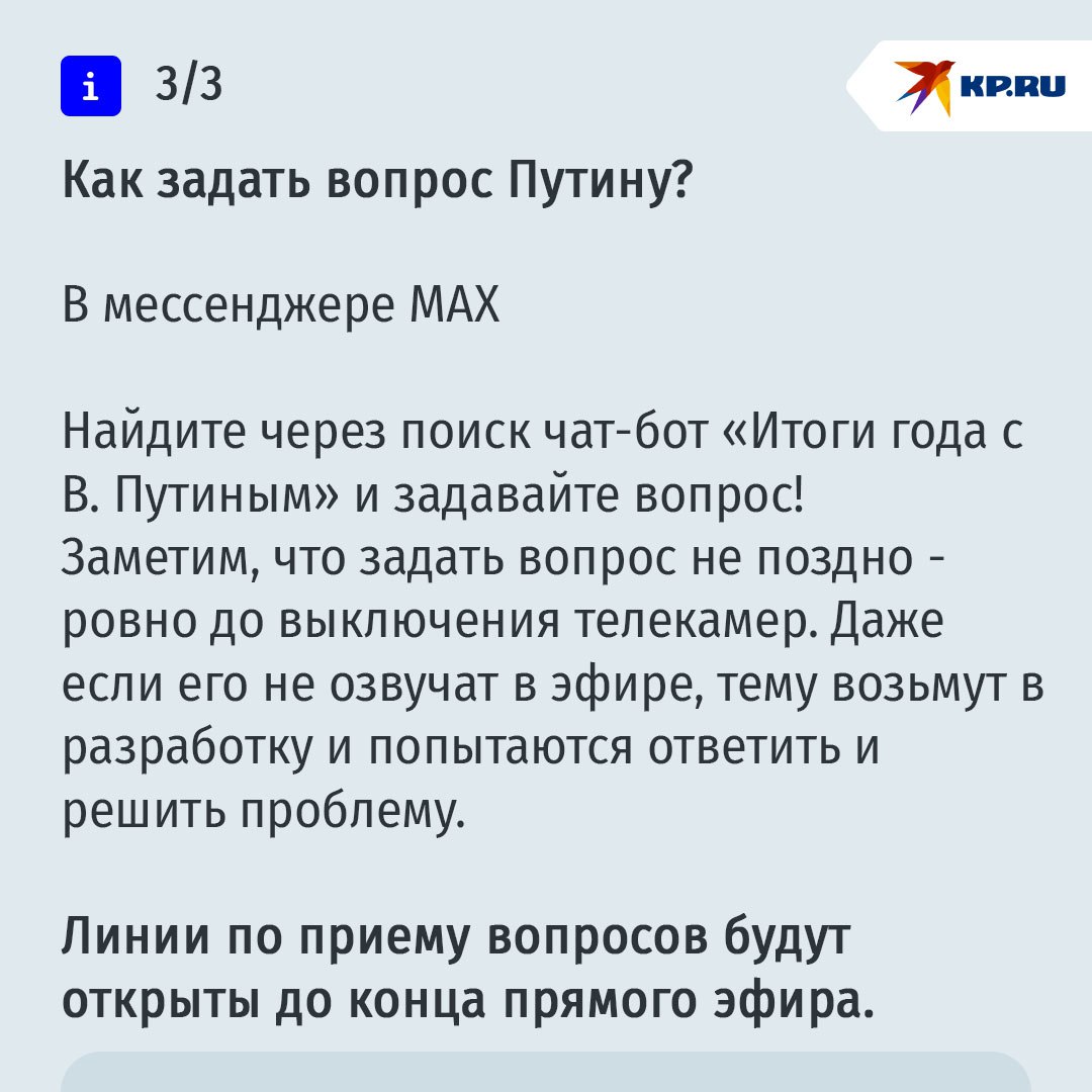 Прямая линия, большая пресс-конференция - как только по старой памяти не называют программу. Ясно одно: сегодня, ровно в полдень по московскому времени в эфире зазвучат самые главные вопросы 2025 года и ответы на них.