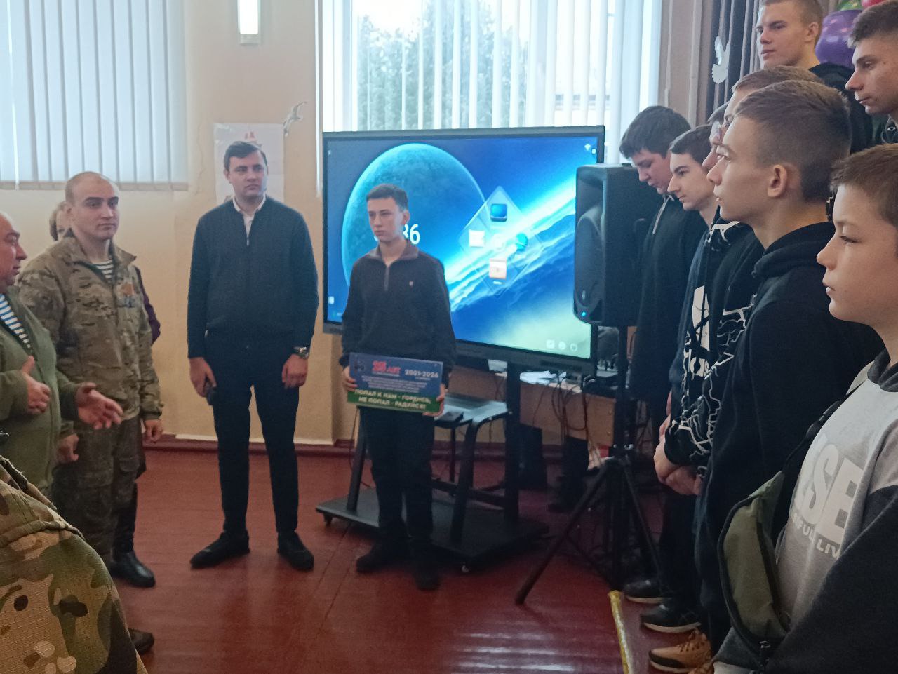 Для юношей из Акимовских школ №2 и №27, а также для студентов Акимовского профессионального лицея уроки мужества провели представители Ярославской областной детско-молодёжной военно-патриотической общественной организации «Десантник» имени Леонида Палачёва.