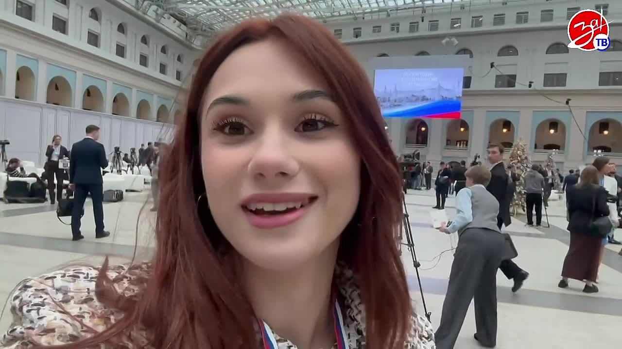 Корреспондент «За!ТВ» Мирослава Бутенко вместе с другими журналистами ожидает начала «Итогов года с Владимиром Путиным».