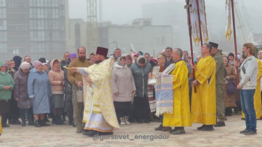 Председатель горсовета Олег Мотрук вместе с главой Энергодара Максимом Пуховым присоединились к верующим, собравшимся почтить память святого покровителя.