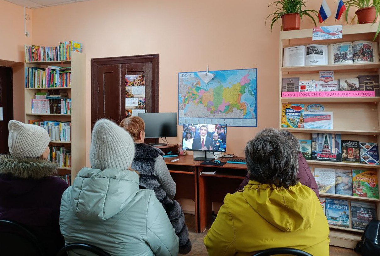 Вместе с гражданами нашей великой страны сотрудники Токмакской центральной детской библиотеки , Токмакской городской библиотеки – филиала, Молочанской городской библиотеки-филиала и читатели, сотрудники Токмакской детской школы искусств и Спортивной школы г.Токмак присоединились к просмотру прямой трансляции с Президентом Российской Федерации.