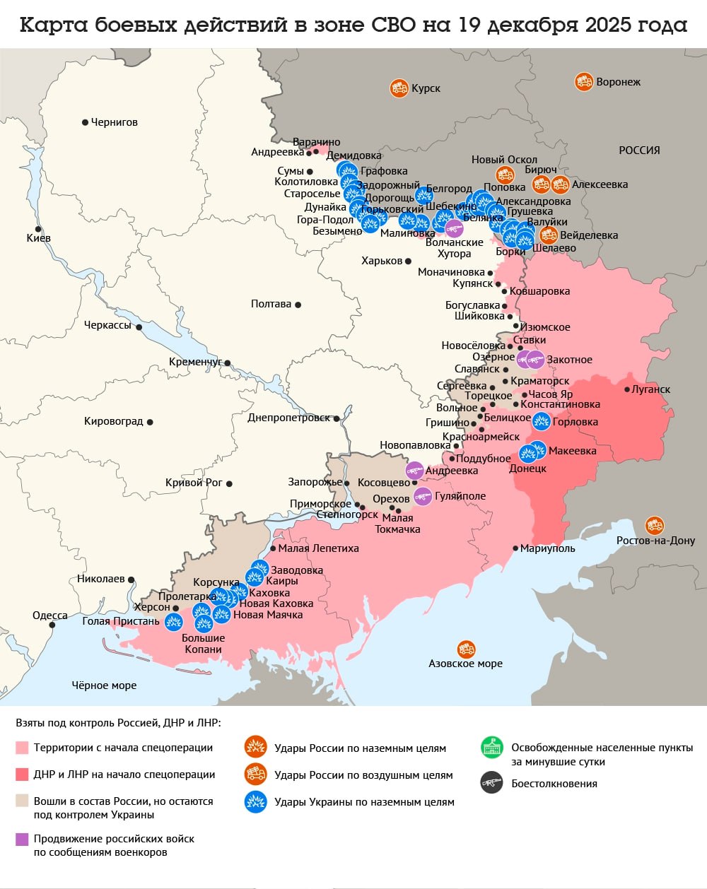 Карта боевых действий в зоне СВО на 19 декабря 2025 года