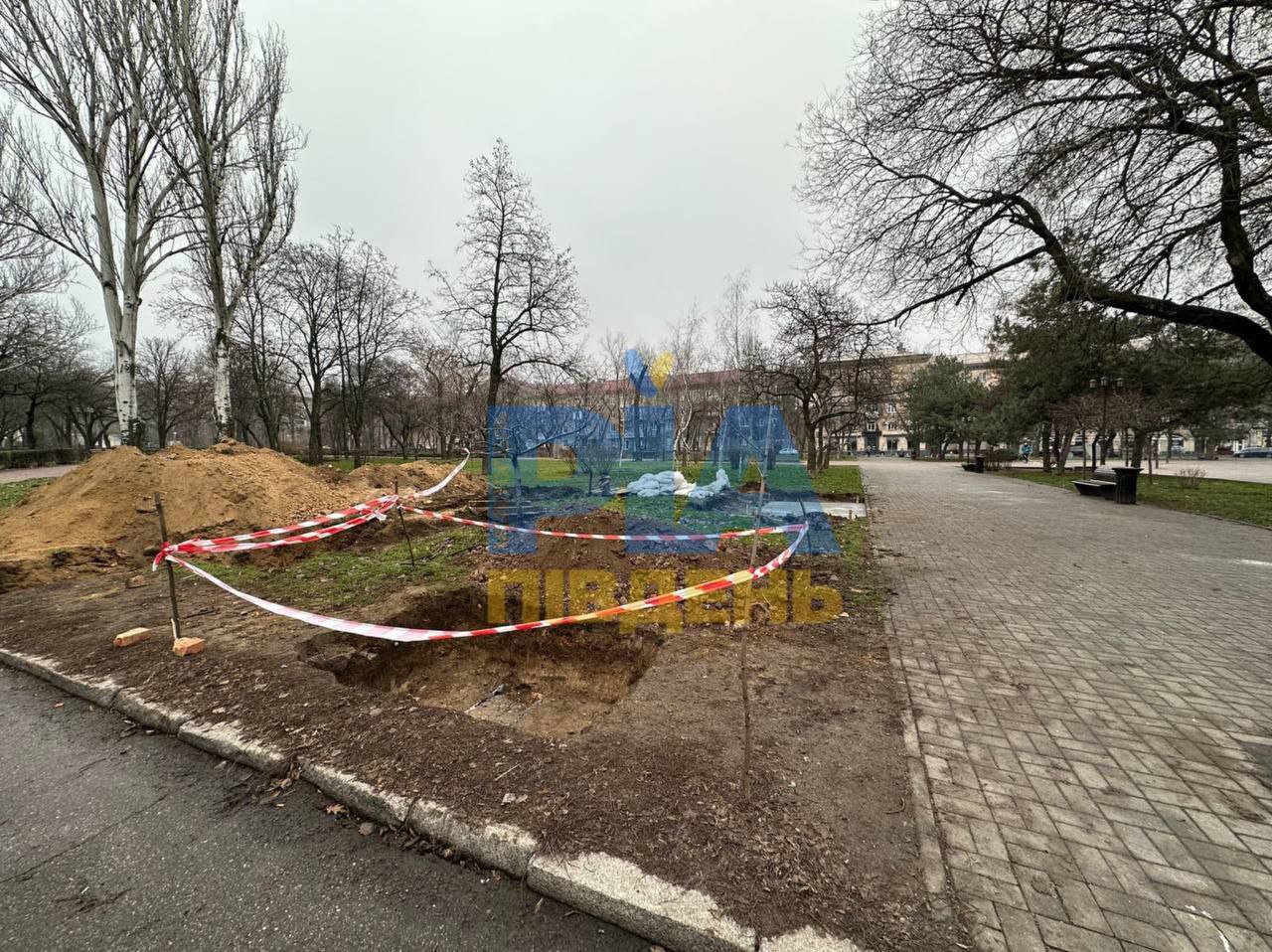В городе коммунальщики начали строительство общественного туалета... прямо на аллее парка.