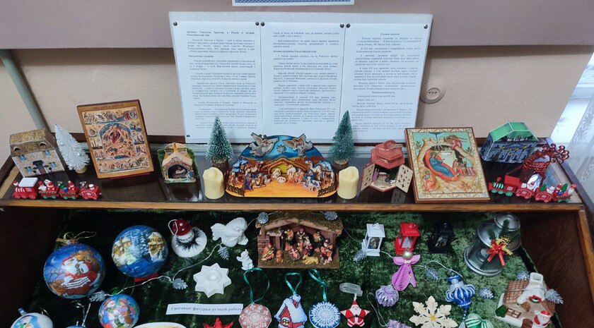 Выставка открылась в музее Петра Шмидта. Центром стала экспозиция «Атрибуты православного Рождества», подготовленная вместе с музеем «Абрамцево»: на ней представлены рождественские изделия и вертепы XIX века.