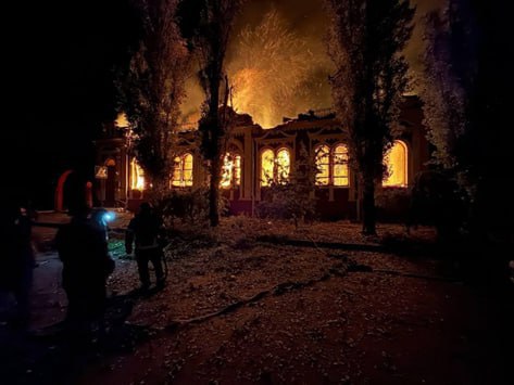 Разбитая крыша, обоженные стены, а во дворе бричка припорошенная снегом. Это музейный экспонат принадлежавший самому известному уроженцу Гуляй-поля Нестору Махно. Штурмовиками группировки Восток здание музея полностью зачищено от киевских формирований. В пятидесяти метрах от этого места городкая администрация, а это значит наши войска уже ведут штурм центра Гуляй-поля в районе многоэтажек. ВСУ остаетсятолько отходить.