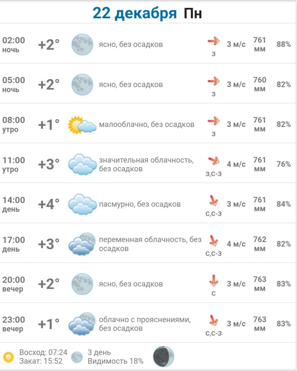 Подробно о погоде в Васильевке 22 декабря 2025 года