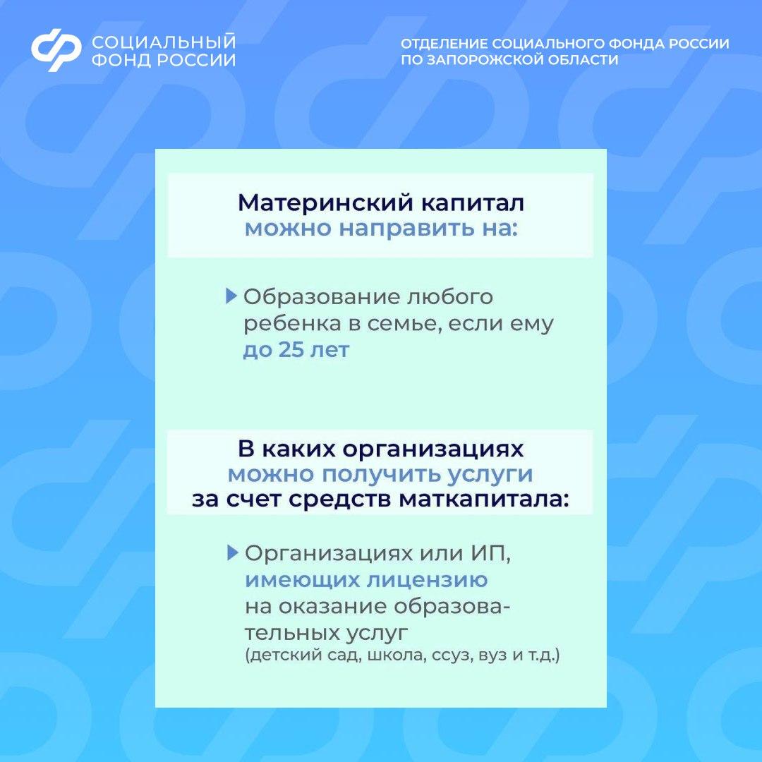 Направить материнский капитал можно не только на образовательные услуги, но и на содержание/уход и проживание на период обучения.