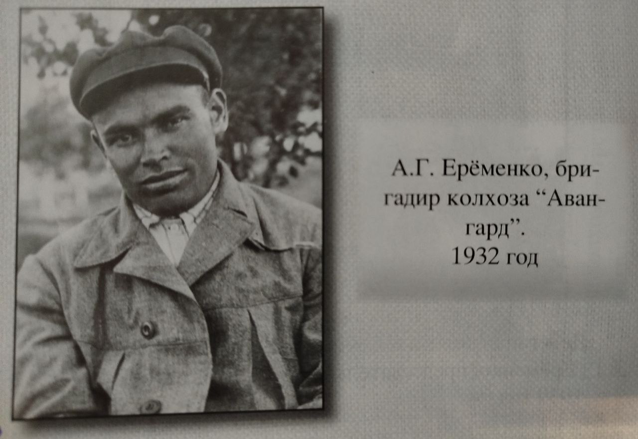 Родился Алексей Гордеевич в 1907 г. в бедной крестьянской семье в селе Просяное Днепропетровской области. Окончил 4 класса церковно-приходской школы. Вскоре ушел на заработки к зажиточным людям в село Бочарово (ныне Терсянка) Червоноармейского (ныне Вольнянского) района. Когда началась коллективизация, Алексея Еременко избрали бригадиром. А уже через три года назначили заместителем председателя. С 1995 по 1941 год он возглавлял колхоз. И было ему тогда 28 лет. С людьми будущий политрук всегда находил общий язык. Не думал он, что скоро придется защищать свое хозяйство и этих людей от фашистов. И хотя у председателя была бронь от призыва на фронт, он ушел в армию добровольно. Дома осталась жена и 4 детей.