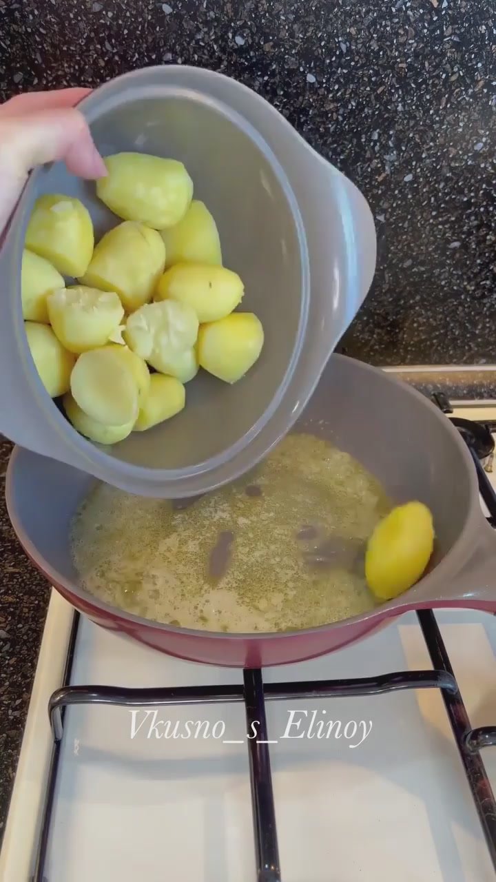 Картофель очистить и отварить до готовности. Слить воду и обжарить картофель на сливочном масле на большом огне. К румяному картофель добавить чеснок, специи,сыр и укроп.