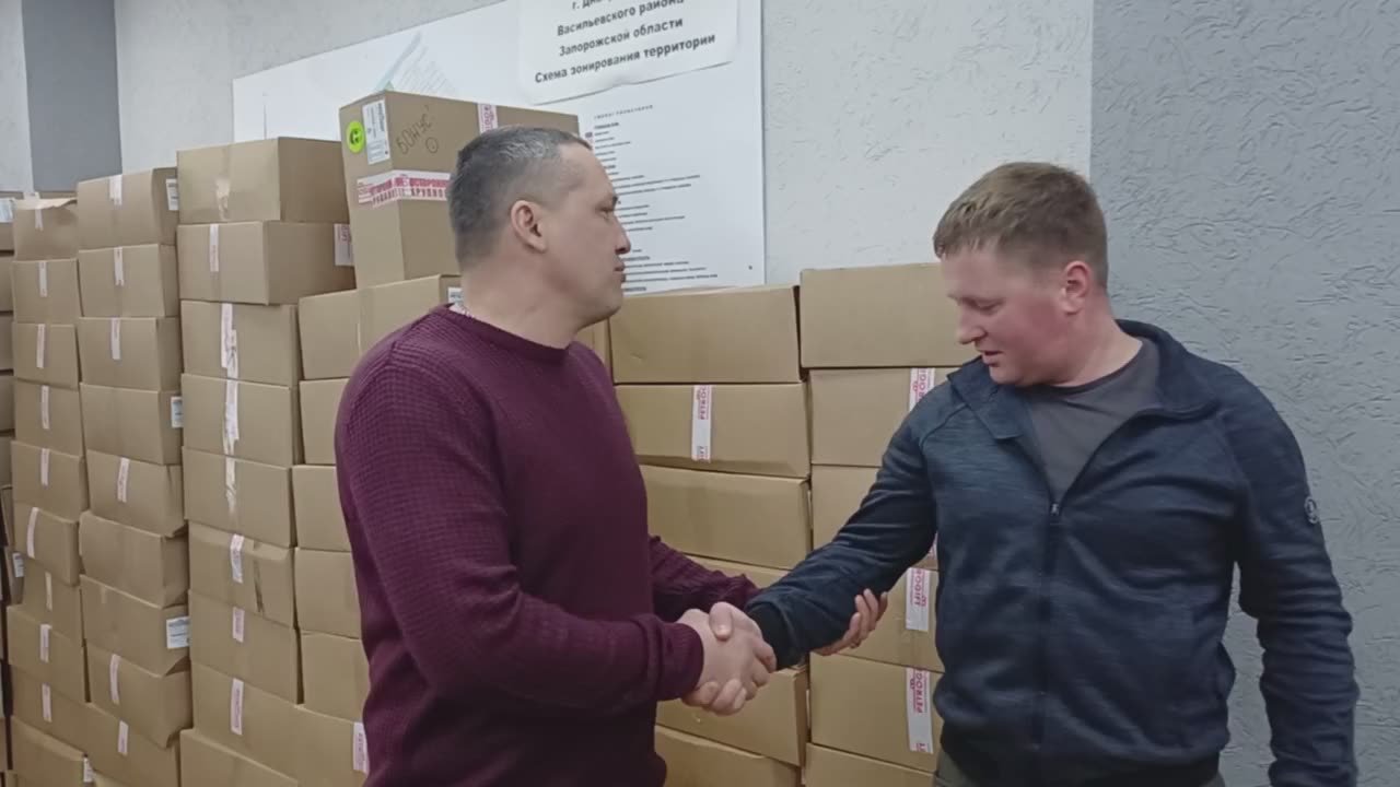 Заместитель главы Васильевского муниципального округа – начальник территориального отдела города Днепрорудное Олег Краснов выразил благодарность шефам из Республики Карелии за полученные подарки: