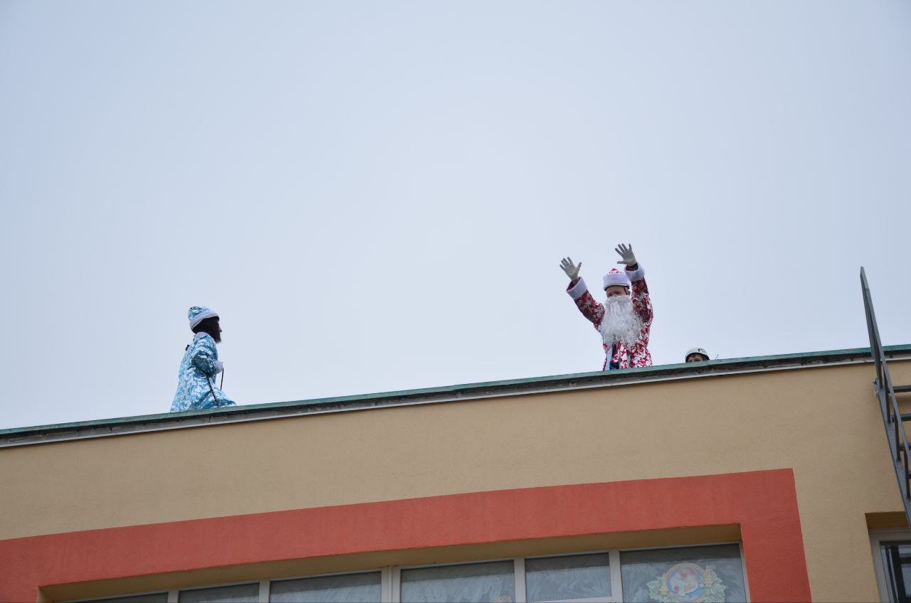Если нет, то зря сомневаетесь. У нас есть неопровержимые доказательства его существования! Деда Мороза — и не одного, а целых двух — в компании Снегурочки и добровольцев Запорожского РО ВСКС видели прямо на крыше Бердянского детского сада №35 «Вишенка».