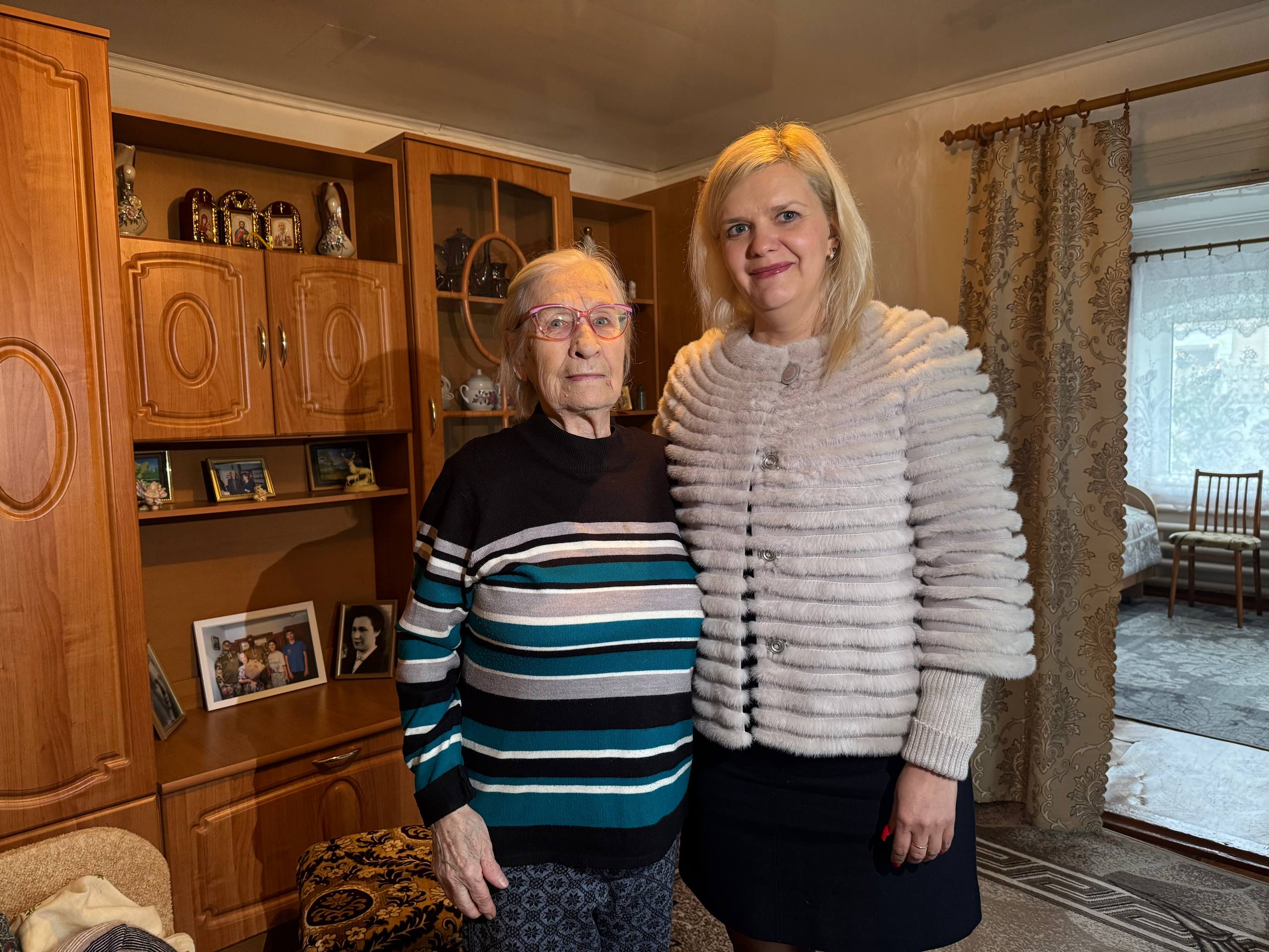 В конце прошлого года руководитель комитета Елизавета Челакова приехала поздравить труженицу тыла с зимними праздниками. В этом году она снова навестила Валентину Александровну и вручила ей подарки.