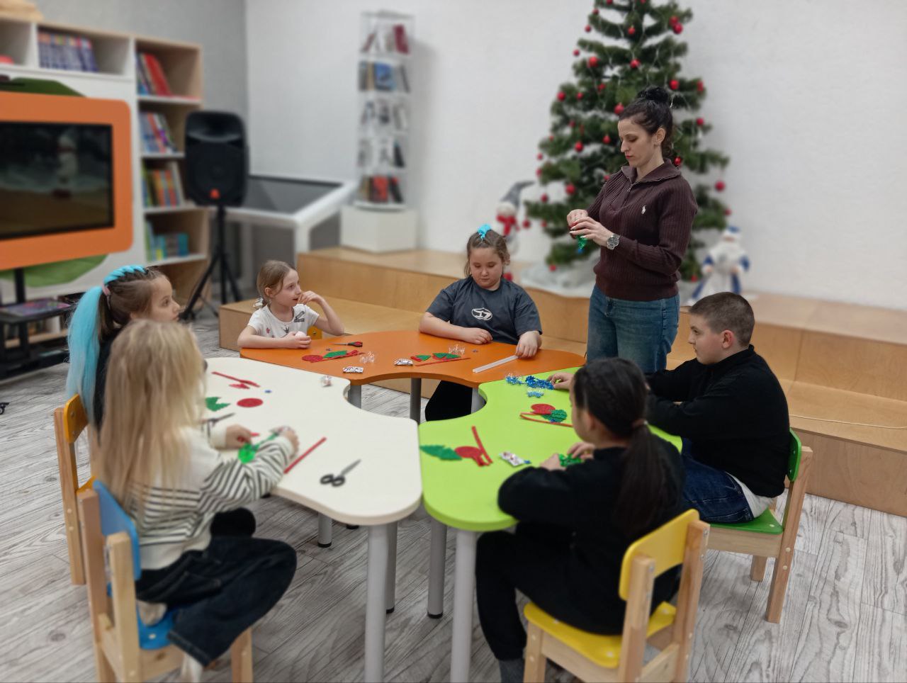 Библиотекарь подробно рассказала и показала как правильно соединять детали, чтобы создать красивую и оригинальную поделку. Дети с интересом слушали и активно участвовали в процессе, проявляя свою фантазию и творческие способности.