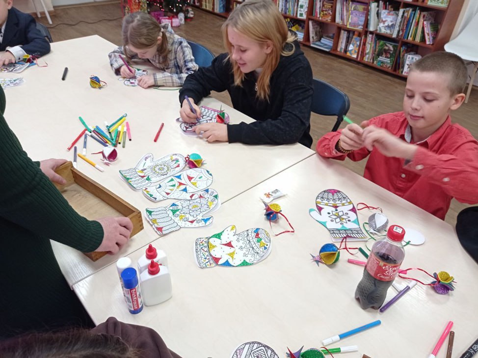 В продолжении мероприятия для юных читателей прошел мастер-класс «Рукавичка Деда Мороза».