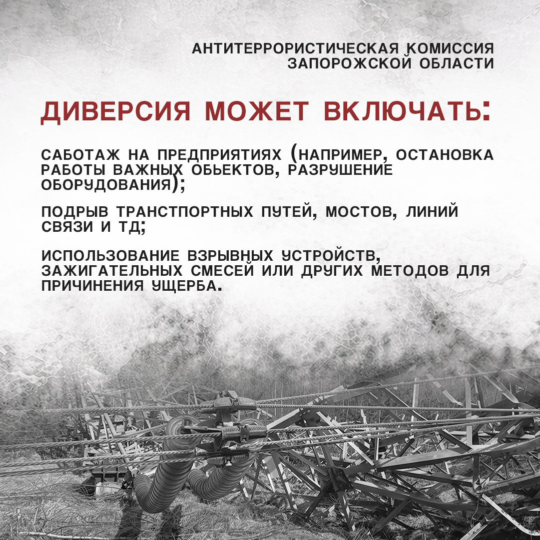 АТК ЗАПОРОЖСКОЙ ОБЛАСТИ ПРЕДУПРЕЖДАЕТ О НАКАЗАНИИ ЗА УЧАСТИЕ В ДИВЕРСИИ