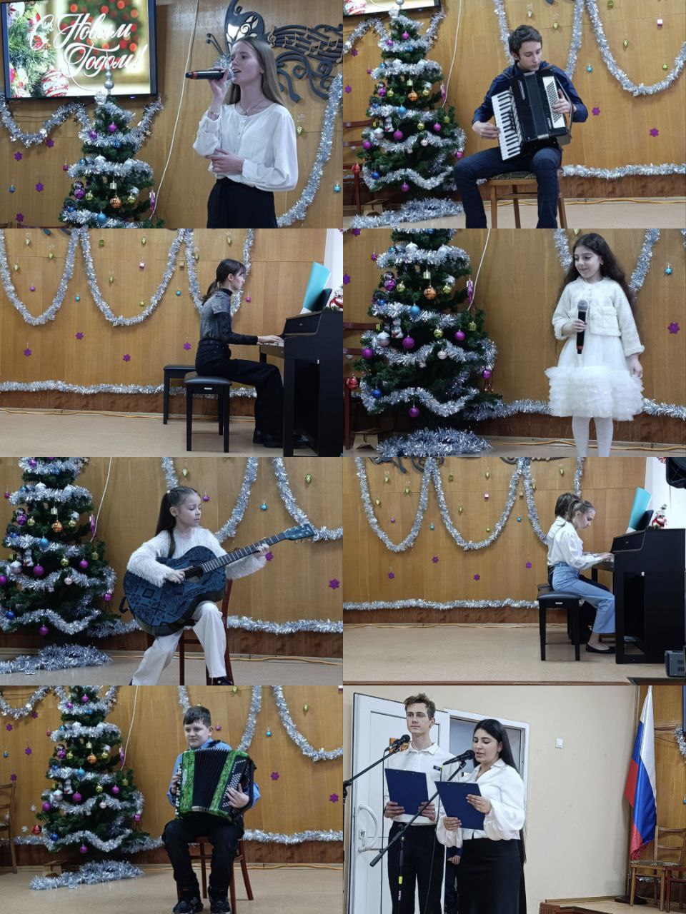 Юные музыканты исполнили полюбившиеся новогодние мелодии и классические произведения, которые затронули самые тонкие струны души гостей. В зале царила атмосфера настоящего праздника, наполненная светом, музыкой и предвкушением чуда, звучали добрые слова поздравлений.