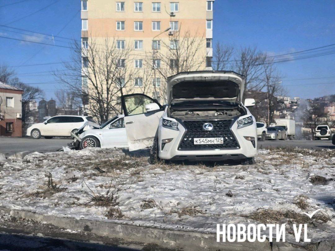 После столкновения Lexus вылетел с дороги и оказался прямо на клумбе. О пострадавших не сообщается.