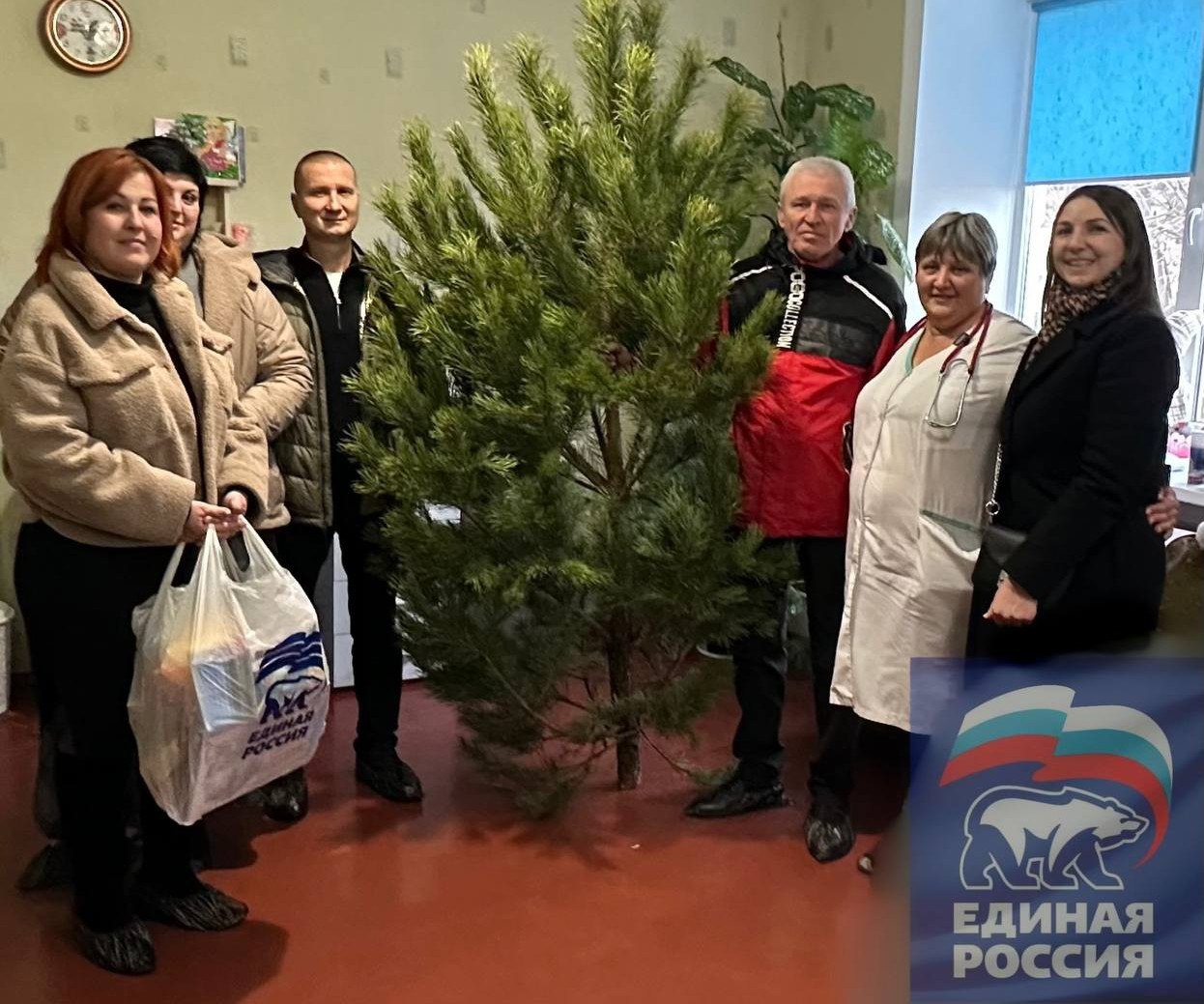 Депутаты привезли в отделение живую ёлку, передали новогодние подарки детям и поздравления от Главы Токмакского муниципального округа, секретаря местного отделения партии «Единая Россия» Александра Калмыкова.