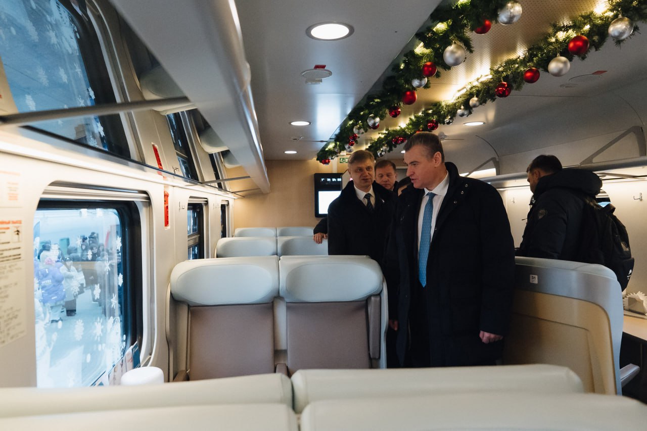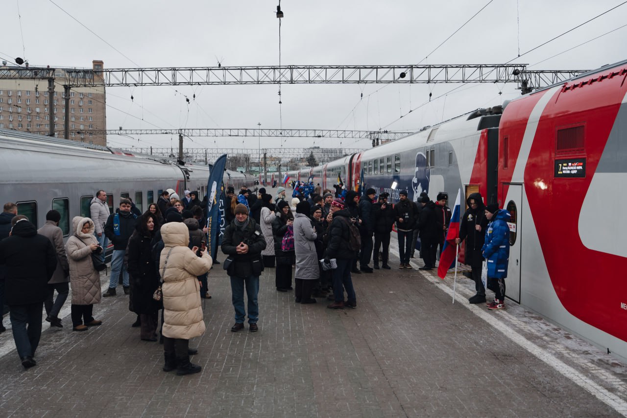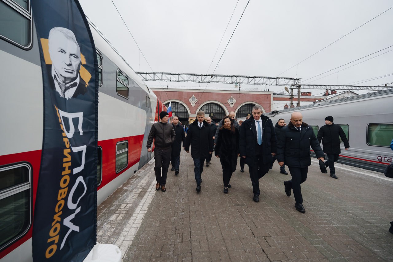 В торжественной церемонии приняли участие партийцы ЛДПР, генеральный директор — председатель правления ОАО «РЖД» Олег Белозёров, генеральный директор АО «ФПК» Владимир Пястолов, а также почётные гости. Первых пассажиров в путешествие сопровождал Концертный образцовый оркестр ОАО «РЖД», исполнивший музыкальные произведения, которые особенно любил Владимир Вольфович.