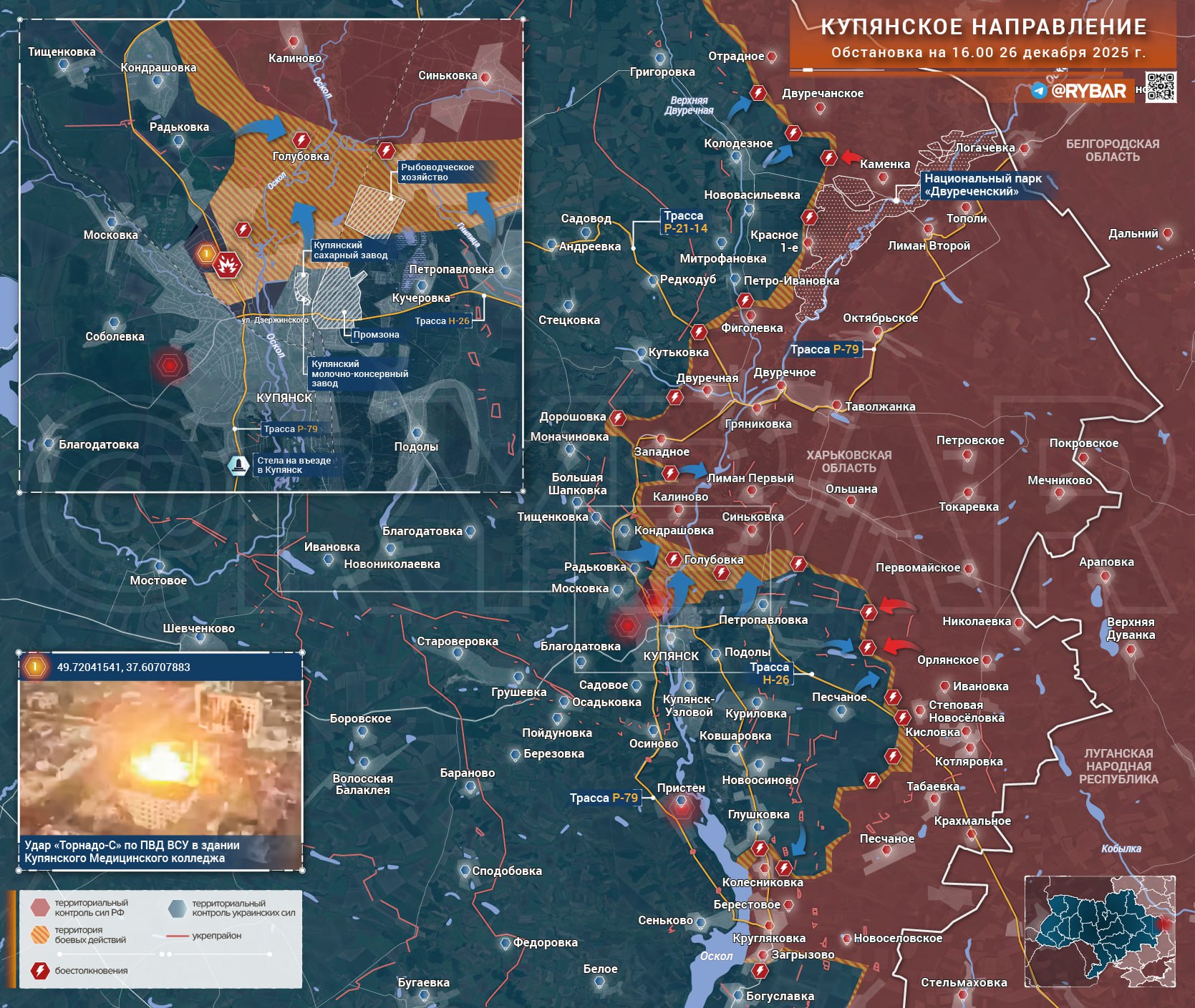 С Купянского направления продолжают поступать свидетельства ухудшения обстановки. Появились кадры удара по позициям ВСУ в местном медицинском колледже, что подтверждает заход противника в данный район.