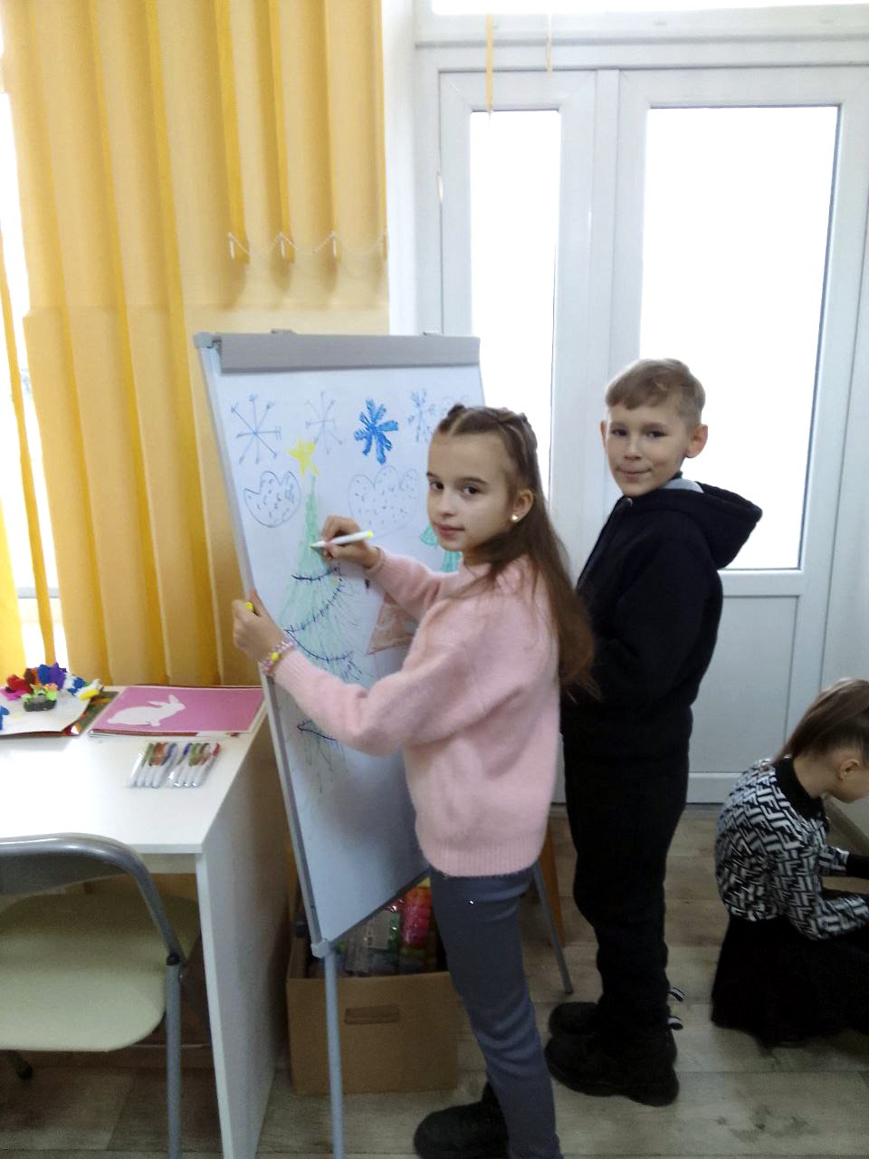Юные таланты с увлечением создавали яркие новогодние открытки, воплощая на бумаге свои сказочные фантазии. Творческую атмосферу дополнили поздравления от Деда Мороза, Снегурочки и любимых сказочных героев.