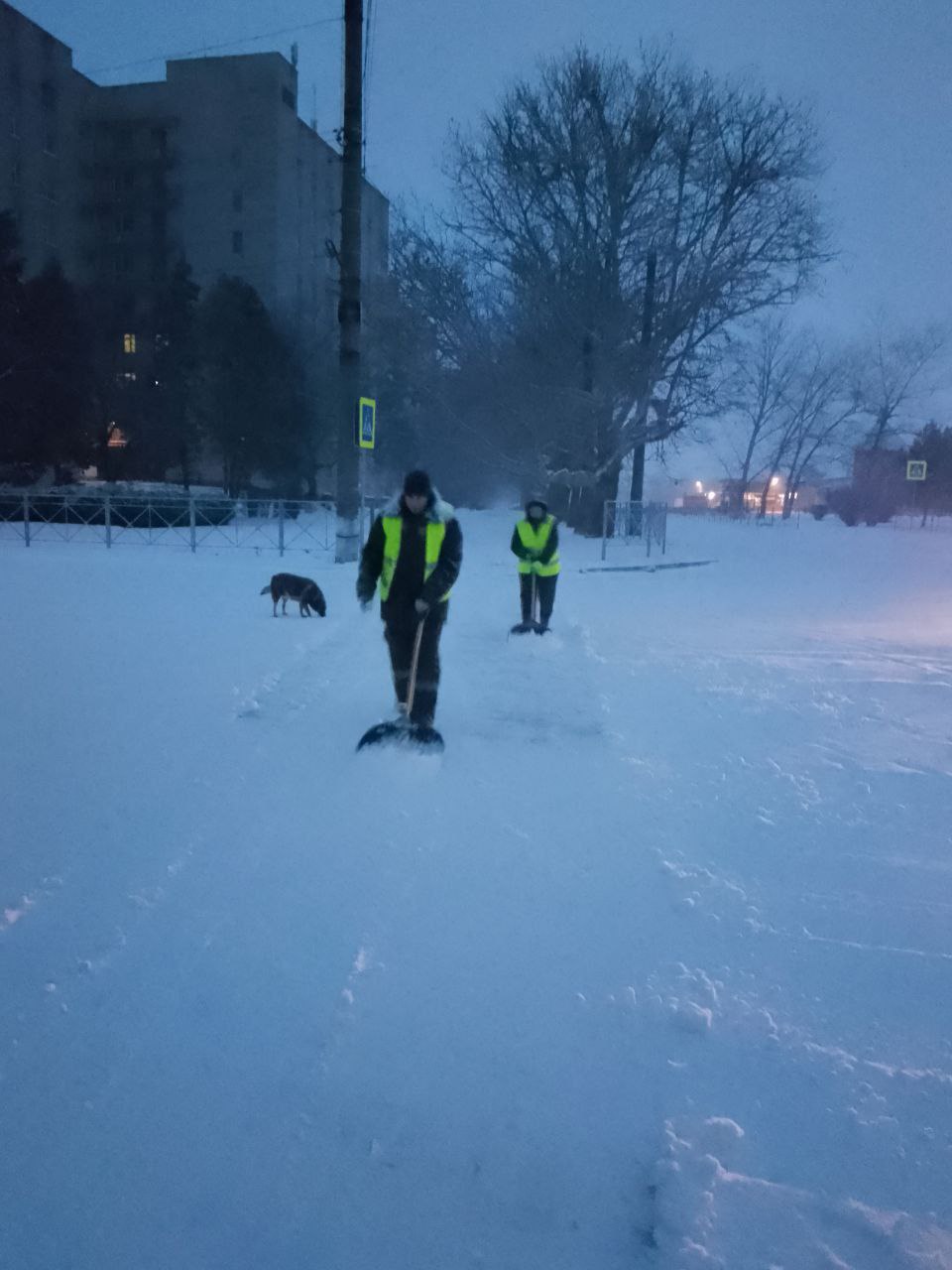 С раннего утра коммунальные службы занимаются уборкой снега на улицах нашего города Днепрорудное, расчищают дороги и обрабатывают противогололедными средствами для комфорта жителей.