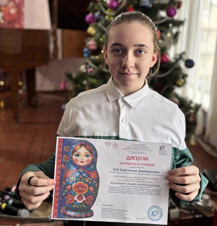Анастасия Зуб, учащаяся Днепрорудненской детской школы искусств музыкального отделения по классу «Клавишный синтезатор», удостоена звания лауреата II степени на II Всероссийском конкурсе искусств «Россия – творческая душа», представив атмосферную композицию Елены Дэвис — «Зимний лес».